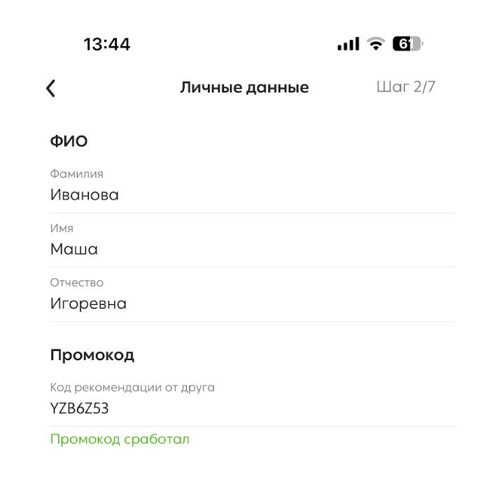 - Промокод (вставьте ранее скопированный код)