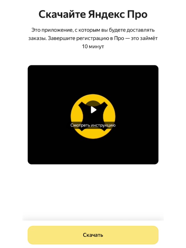 Для работы потребуется приложение Яндекс Про. Система предложит ссылку для скачивания и инструкцию по регистрации.